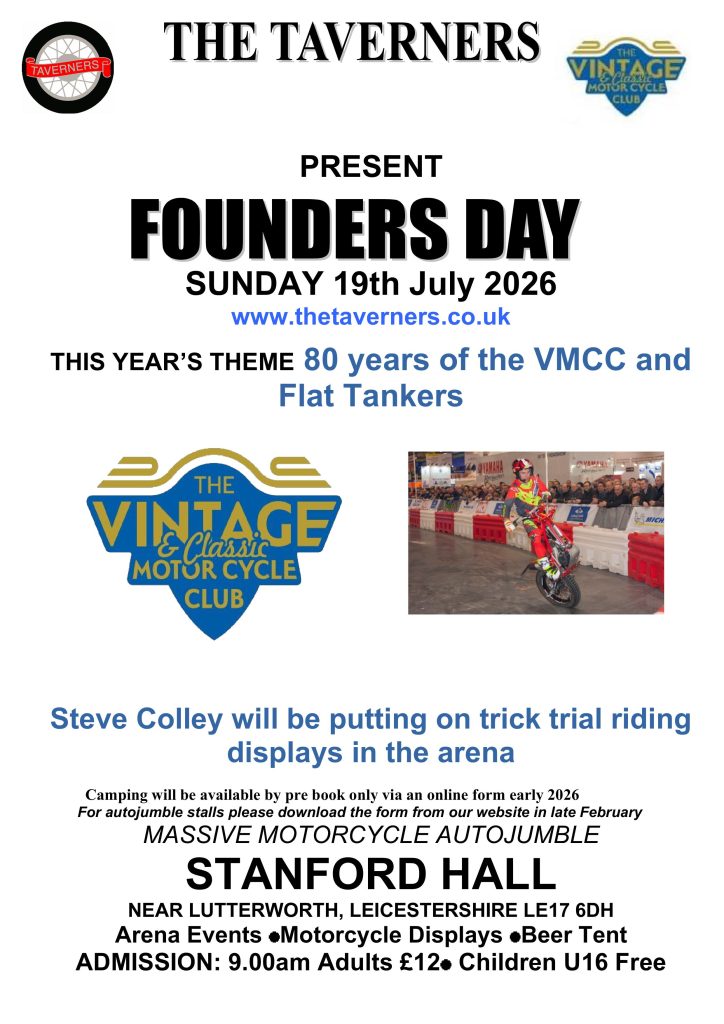 Synonymous with ‘The Taverners,’ is Founders Day set in the scenic Stanford Hall grounds, it has become one of the major UK events in the ‘old bike’ calendar. From humble beginnings almost fifty years ago with just a hundred or so visitors and half a dozen people selling surplus bike bits out of their car boot or laid out on the obligatory ‘paste table’ the event has grown in to a vast slick and professional operation.